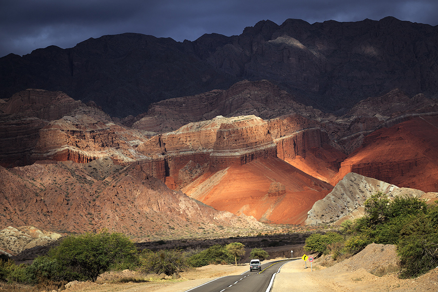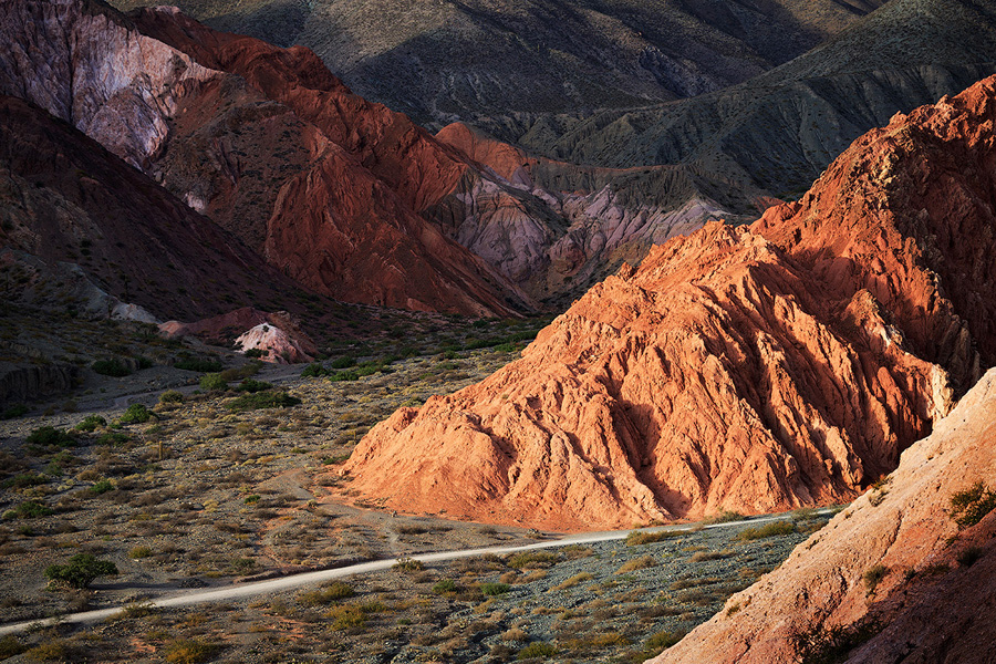 Мы направляемся в расположенный в зеленой долине городе Cafayate – конечный пункт нашего маршрута. Это один из винодельческих центров Аргентины, где находятся самые высокогорные виноградники в мире – высота рельефа здесь около 1700 метров. Часть нашего пути будет проходить через впечатляющий горный массив - сюда мы специально вернемся еще раз для вечерней съемки.