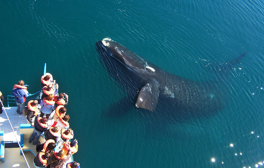Полуостров Вальдес – одно из лучших мест в мире для наблюдения за китами. Тысячи морских гигантов приплывают в теплые (для китов, не для людей) воды залива для размножения и взращивания потомства. Eubalaena australis или южный гладкий кит – вид, типичный для этих широт. Взрослая особь достигает 18 метров в длину и весит 80 тонн – но, пока не увидишь его своими глазами, то такие размеры даже сложно представить! Южный гладкий кит – удивительно дружелюбное и общительное создание. Они без страха подплывают к лодкам и дают рассмотреть себя со всех сторон. Особенно любят приближаться к людям мамы с «малышами», длина которых при рождении уже достигает 5-6 метров, а вес – около полутора тонн. К сожалению, дружелюбие и контактность этого вида китов делали их легкой добычей для китобоев, и в начале 20 века уже стояла угроза исчезновения вида. После запрета на охоту численность постепенно начала восстанавливаться.