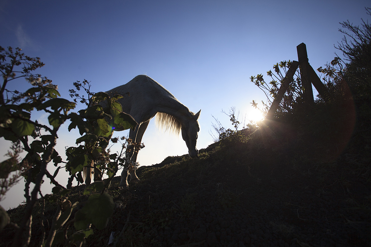 Приехав к вулкану и дойдя до конца тропы, ты понимаешь, что тебя в очередной раз развели. Никакой лавы там нет и в помине. Есть просто скопление серых камней, которые когда-то были лавой. По словам проводника, увидеть лаву не было никаких шансов. Мало того, тур не предполагает подъем на вулкан Пакая, хотя он так называется. Вы проходите всего три километра, и тропа заканчивается у подножия. Раньше, до 2006 года, все поднимались к самому кратеру, но после сильного извержения подъемы наверх прекратились. Т.ч. увидеть вулкан можно только со стороны. Разочарование было очень сильное, и хотелось по возвращению придать турагентов самой мучительной смерти, но, видимо небеса смилостивились, и послали мне утешение в виде… доходяжной белой лошади. Этот милый Россинант скрасил мне горечь поражения))
